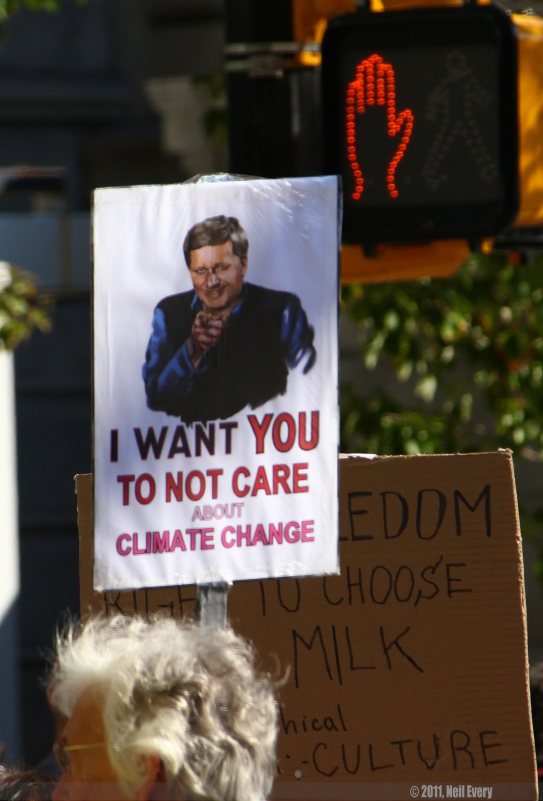 In light of the horrible events that transpired a few months ago following the Vancouver Canucks' loss in the Stanley Cup final, not to mention certain past incidents involving large crowds and local law enforcement, it was nice to see everyone getting along on Saturday. "Peaceful Protest" was very much the order of the day and though there were significant numbers of Police around (including several undercover guys tucked away up high on the surrounding buildings) everyone seemed to be in good spirits all things considered.